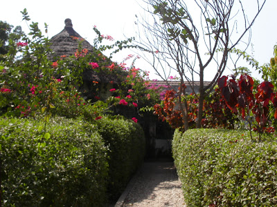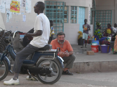 Refreshed, we left a cafe and headed for an auberge mentioned in the Italian Lonely Planet, Keur N'dame (? I think). Arriving there we immediately decided against it, filthy and without showers. We hoped to find something a little better at CasaAfrique. Trudging through town with taxi drivers stopping to offer us a lift at ridiculous prices we arrived at CasaAfrique and found a great room having already been enchanted by it's garden coverered in hibiscus.